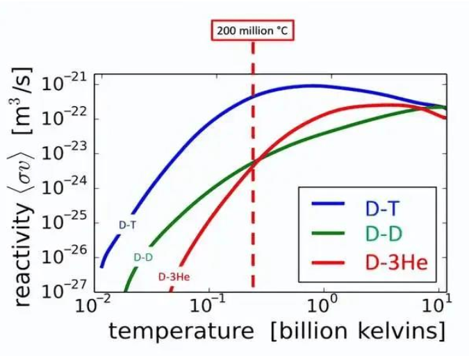 图表4:三种主要聚变反应的反应率随温度的变化关系