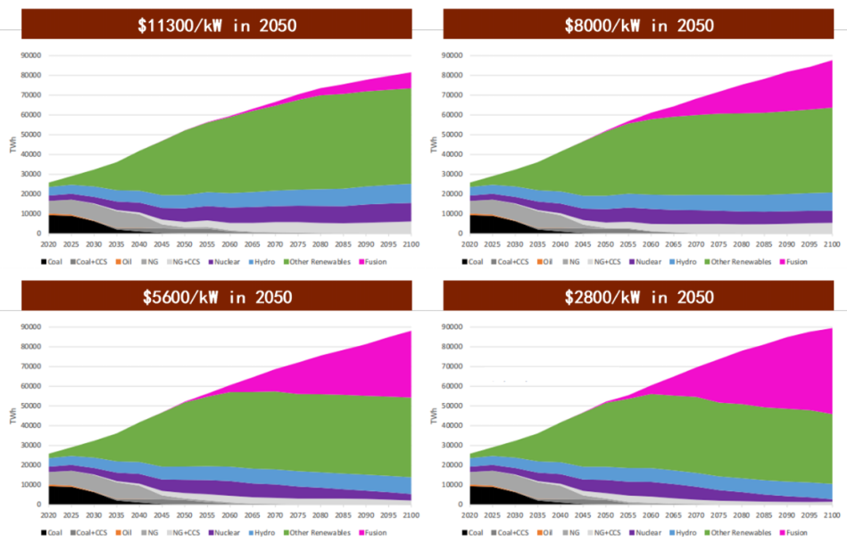 图表12:基于不同核聚变成本假设的全球电力系统结构预测